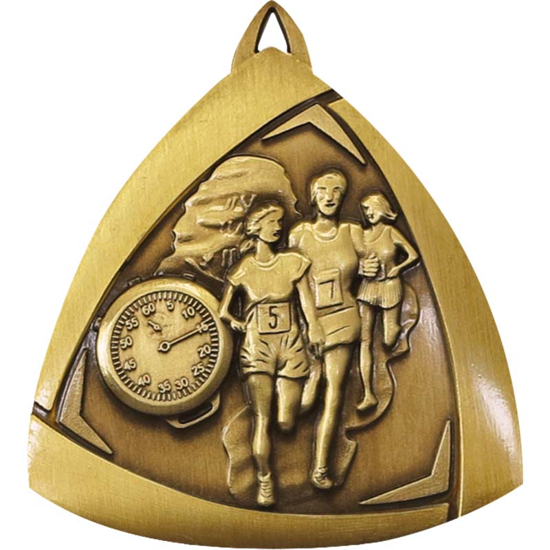 Co-Ed Cross Country Triangle Sculptured Medal - for more product data click on specification