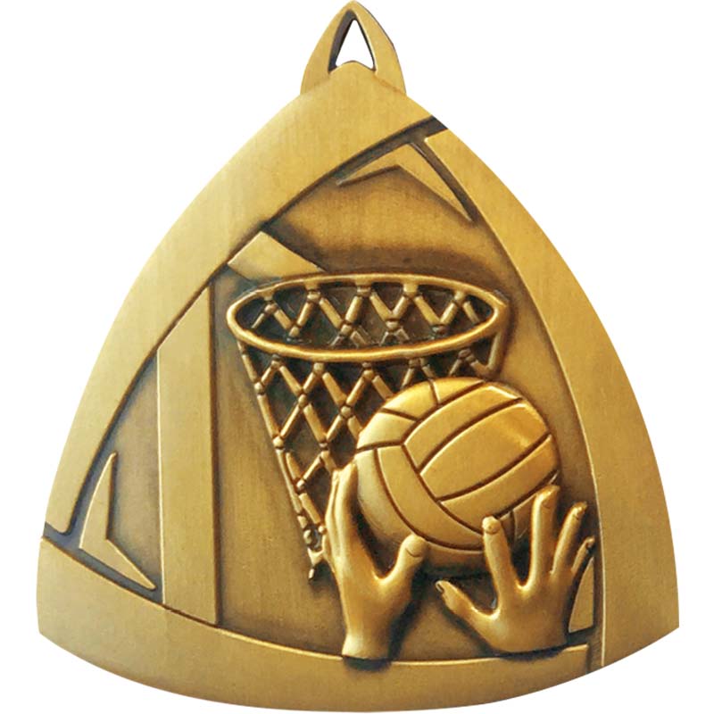 Netball Triangle Sculptured Medal - for more product data click on specification