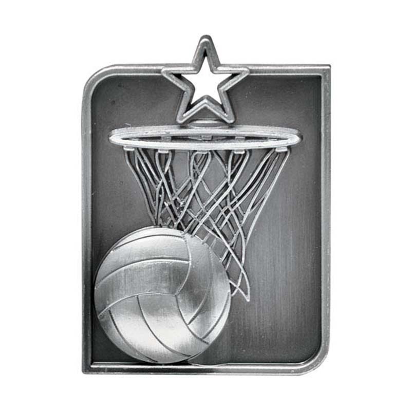 Netball Rectangle Sculptured Medal - for more product data click on specification